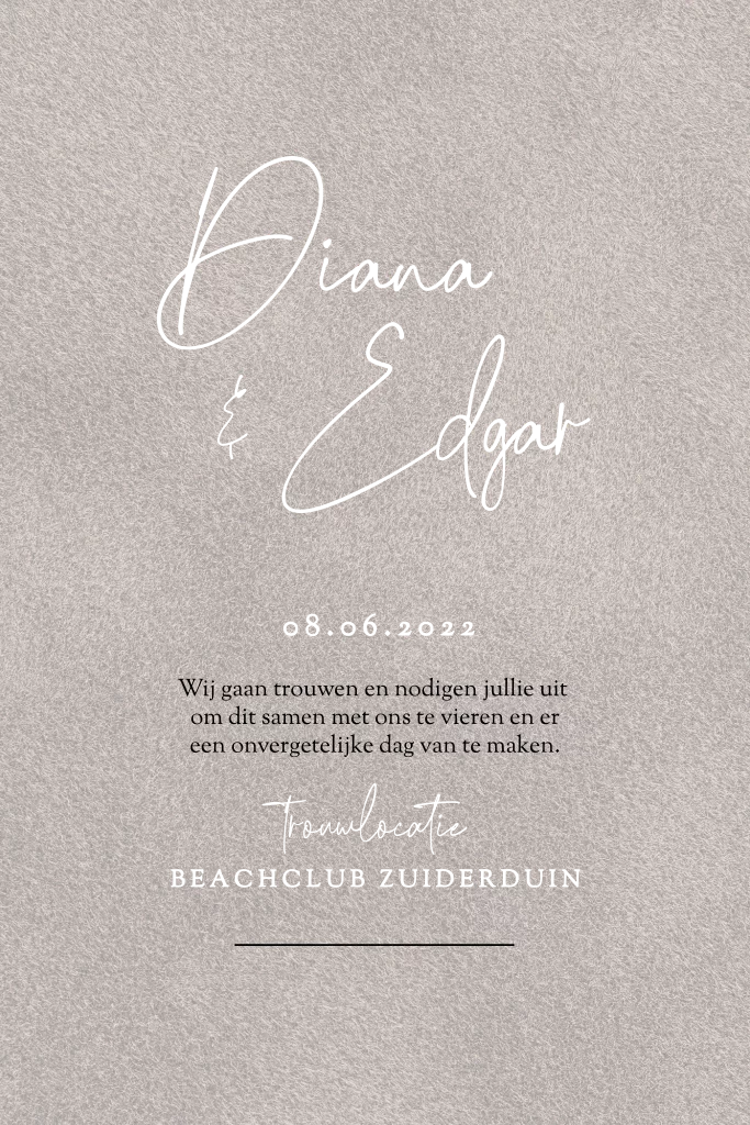 Trouwkaart met een velvet look achtergrond afgewerkt met zwartfolie kalligrafie Modern, tijdloos en chique!