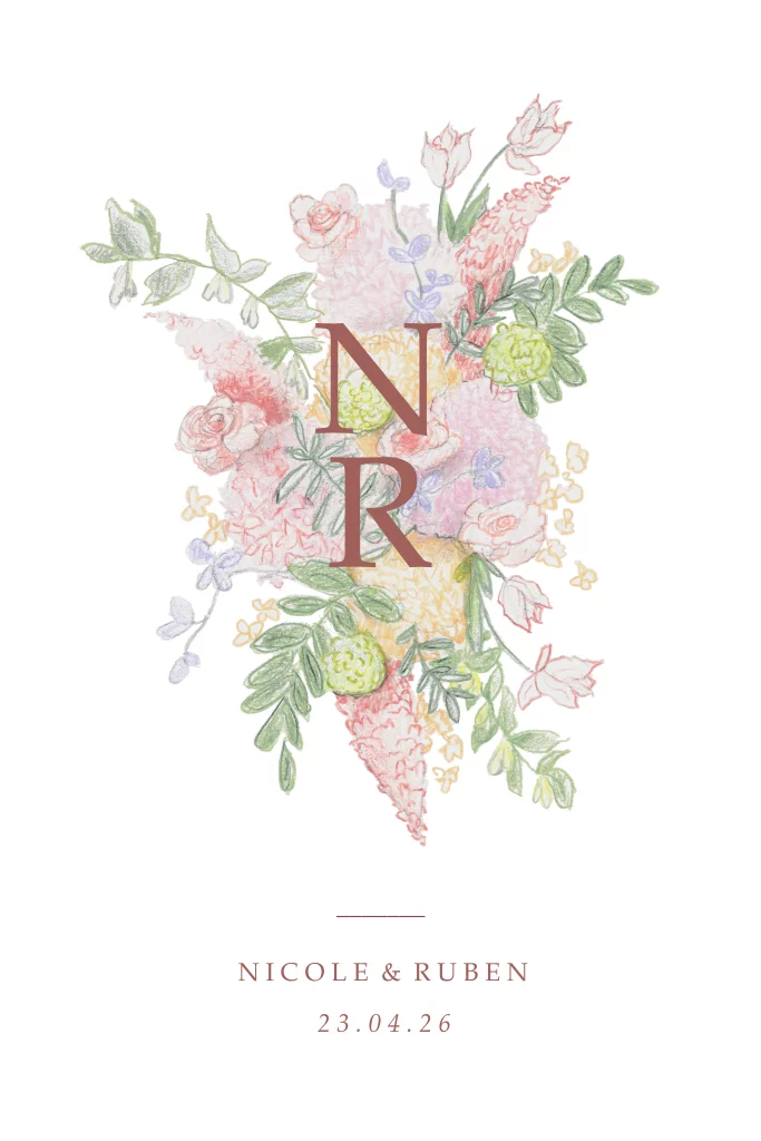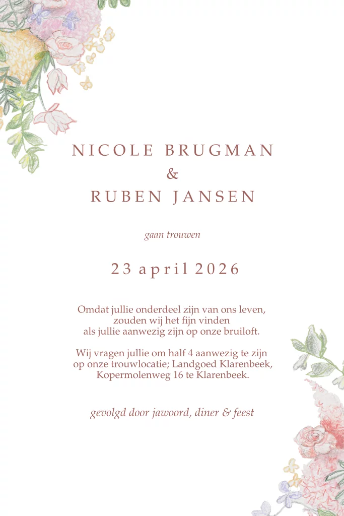 trouwkaart met pastel bloemen en trouwlogo uit de serie Pastel Dream