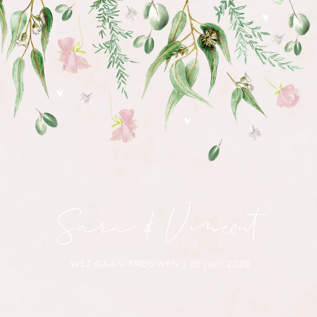 romantische trouwkaart rosegoud folie bloemen en blaadjes