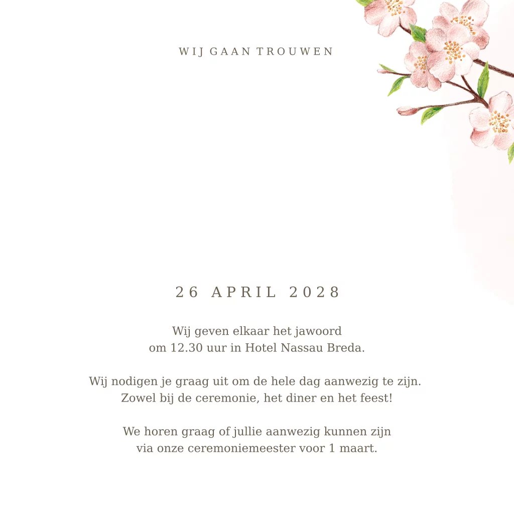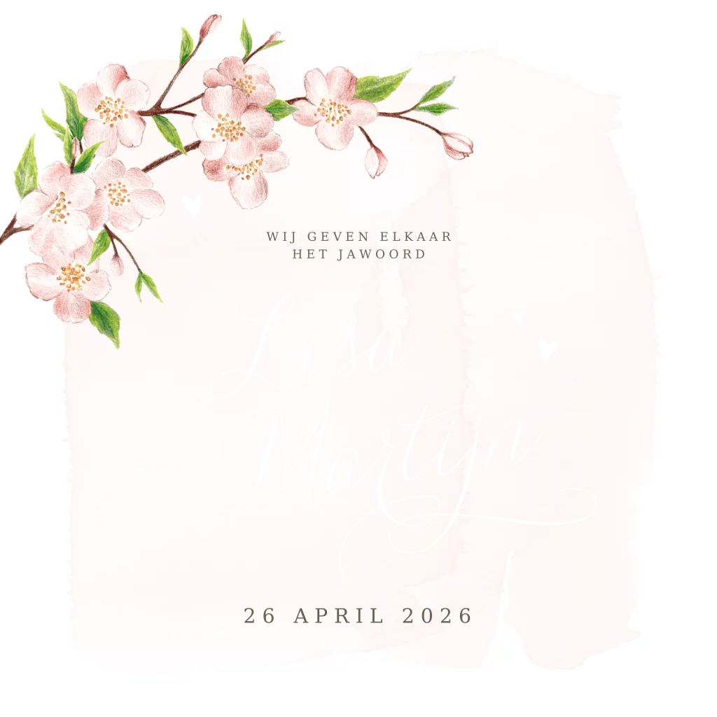 Mooie aquarel achtergrond met kersen cherry bloesem. De gouden details maken dit kaartjes bijzonder en romantisch.