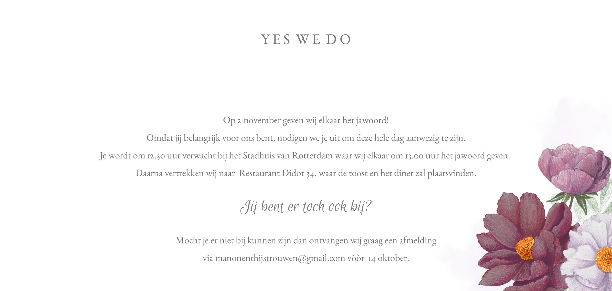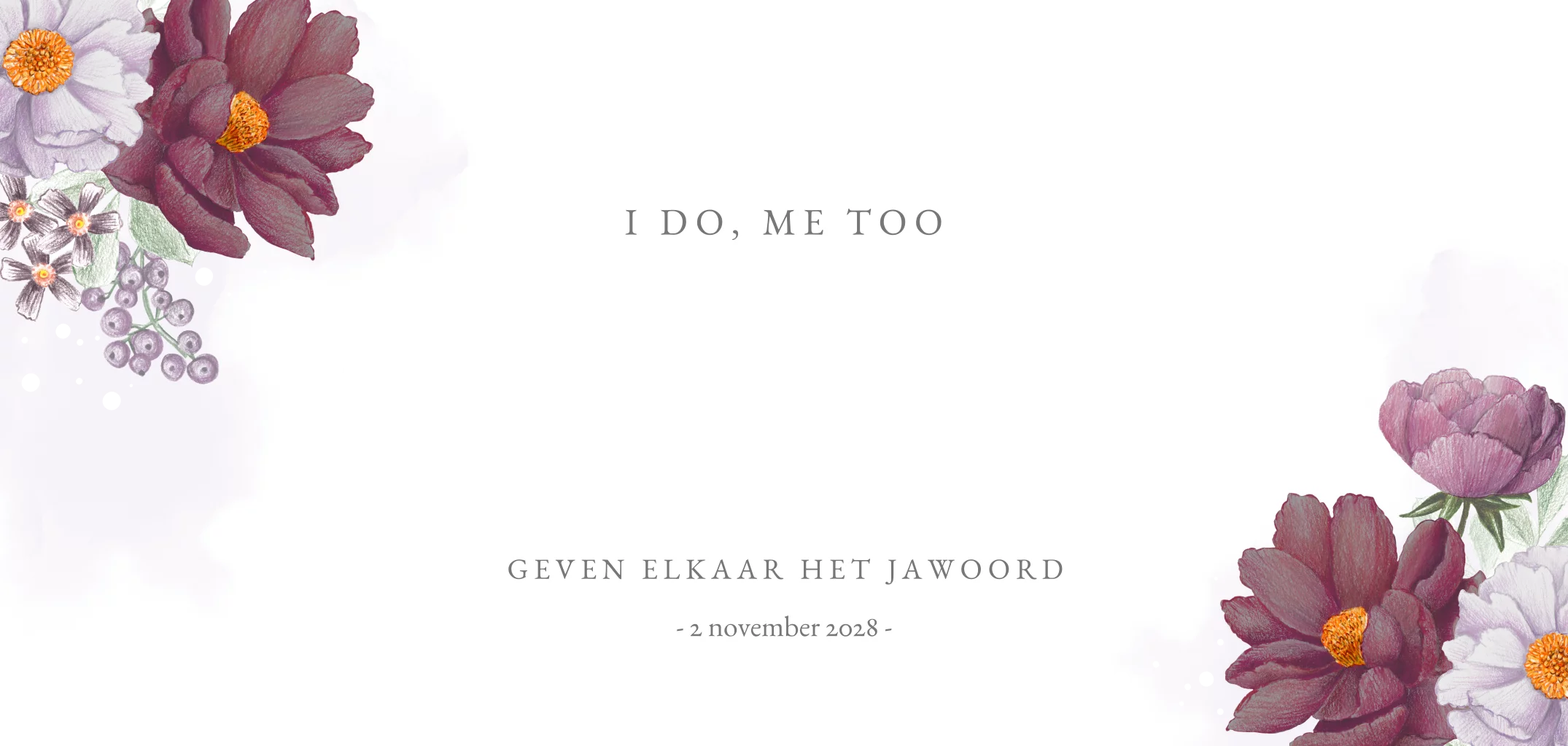 Trouwkaart bloemen bordeaux paars rosefolie.