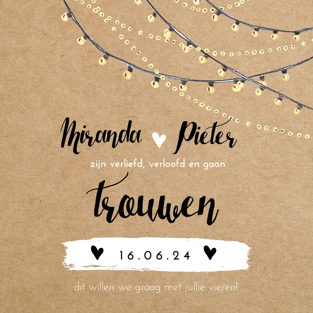 Mooie festival kaart met lichtjes op een kraft achtergrond